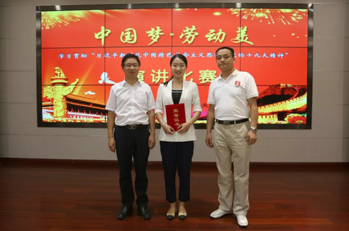 ? ? 經過激烈的角逐,天華公司王琳君的《勞動光榮勞動美》以總分第二名榮獲二等獎,基礎設施公司王俊嶺表演的《勤奮勞動美 中國夢想圓》獲優勝獎。省建設廳副廳長黃祥國、巡視員胡貴玉、省總工會宣教部副部長李學初、湖北工建集團工會主席郭迪明等為獲獎選手頒獎。